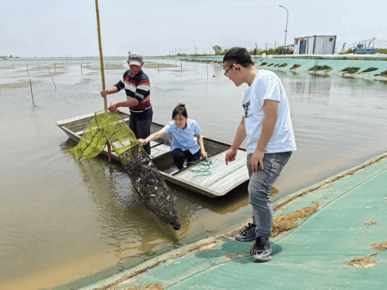 中国人寿财险东营市垦利支公司员工深切大闸蟹养殖现场,领会大闸蟹发展纪律和保障需求环境。