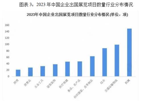 除了境内办展,出国展览也是近年来中展行业成长的一个标的目的,是提拔中国企业和中国经济国际影响力和合作力的主要行动。2023年,中展企业出国展览勾当合计900项,此中参展822项,办展78项,涉及3。96万家企业。从行业分布来看,机械类展会是企业出国展览次要参取的次要类型,共150项,占项目总数的比沉达到16。67%;其次是交通运输物流类展会,共100项,占比为11。11%;其余行业项目标占比均正在10%以下。