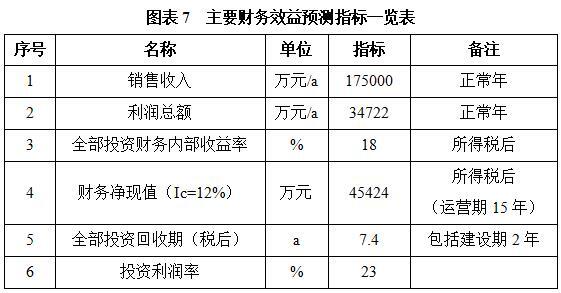 项目达产后,年发卖收入175000万元,利润34722万元,投资收受接管期7。4年(税后,含扶植期2年),投资利润率23%。